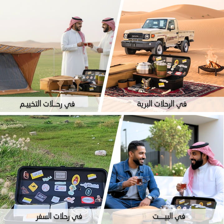 هدية فاخرة تحتوي كل مستلزمات الشاي! سهلة الحمل، تمكنك من التمتع بشاي مميز أينما كنت.رفيقٌ مثاليٌ لعشّاق التفاصيل الراقية حقيبةٌ تَحْمِلُ أصالةَ الشاي في حجمٍ صغير تُحَقِّقُ