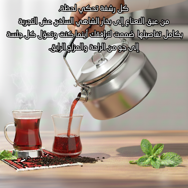 "استمتع بفخامة الشاي الأصيل أينما ذهبت! مع حقيبتنا المعدنية الأنيقة - خفيفة الوزن وسهلة